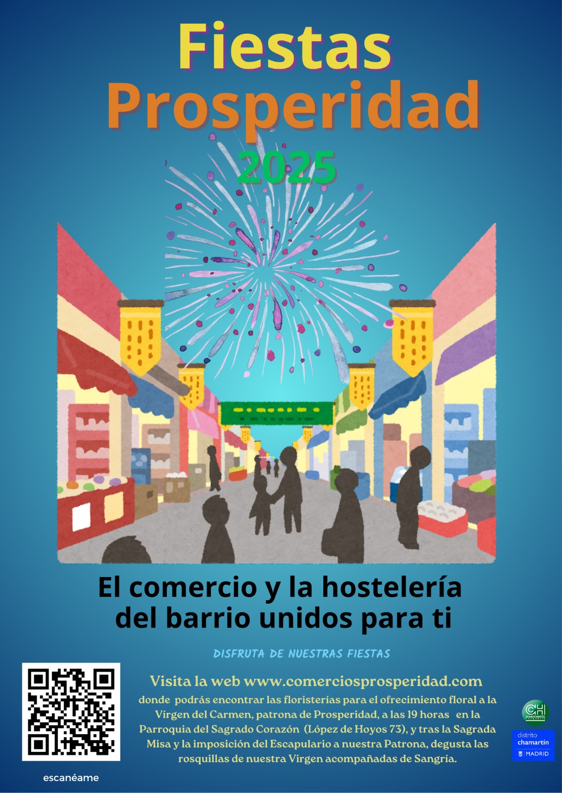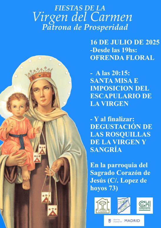 El barrio de Prosperidad celebra este 16 de julio la festividad de su patrona, la Virgen del Carmen. ¿Quieres participar con una entrega de flores? Los comercios de tu barrio te lo ponen fácil. Puedes adquirir un ramo al mejor precio o encargar que realicen por ti la gestión de cara a la ofrenda floral que se realizará a las 19 horas en la Parroquia del Sagrado Corazón de Jesús (López de Hoyos 73).